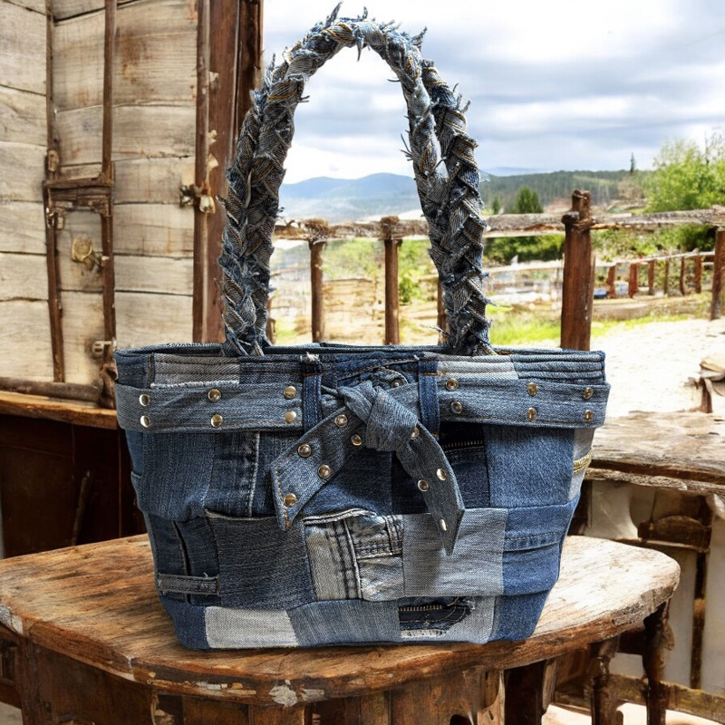 パッチワークしたデニムやニット生地で一点物のお洋服と、普段使いが楽しくなるアイテムの革小物や布小物