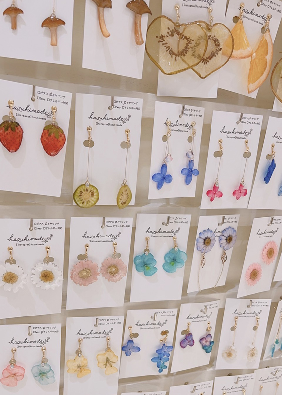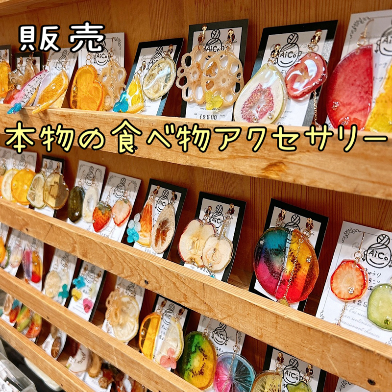大人可愛いから個性派デザインまで取り揃えております。枯れない本物のお花、食べ物アクセサリーです