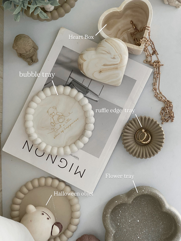 ジェスモナイトを素材としたインテリアを、お部屋に馴染みやすいカラーでお作りしています。