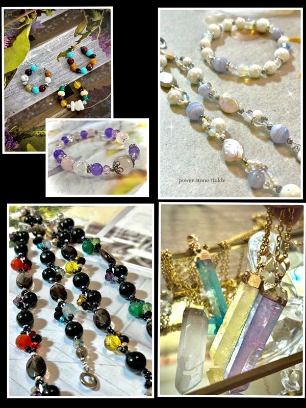 天然石を使った色々なアクセサリー類を作成しています。オーダーも承りますので気軽にお声がけ下さいね