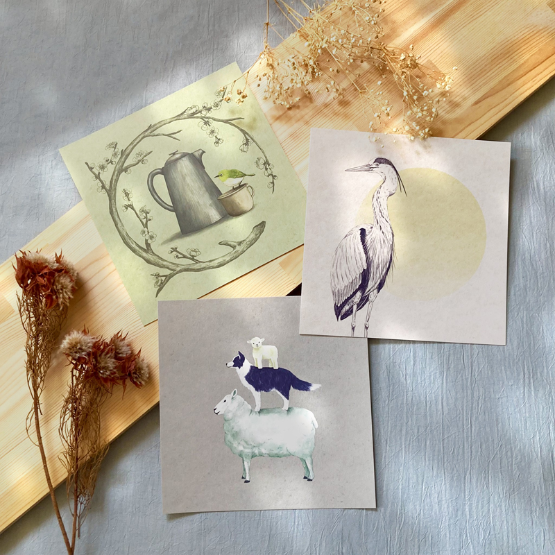 植物や動物をモチーフにイラストを描いています。ポスターや雑貨、一点物の原画も販売予定です。