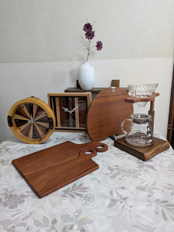地元である岡山県の木材を使用して製作したおもちゃ、小物雑貨などの販売をさせていただきます。