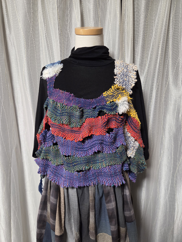 糸の個性を生かした遊び心いっぱいの織りや、染色で上質感や味わいのある風合いが表現された作品です。