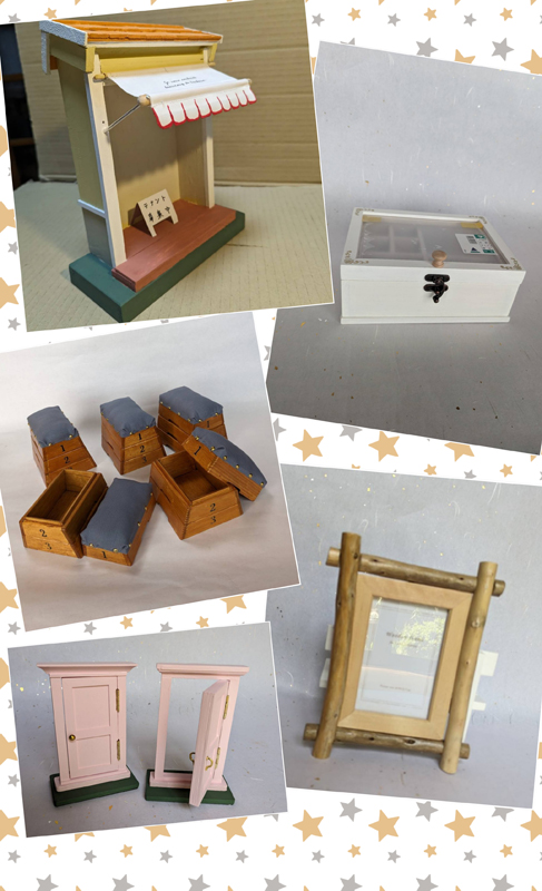 ミニチュア家具やおもちゃ、収納などの木工品を販売しています。