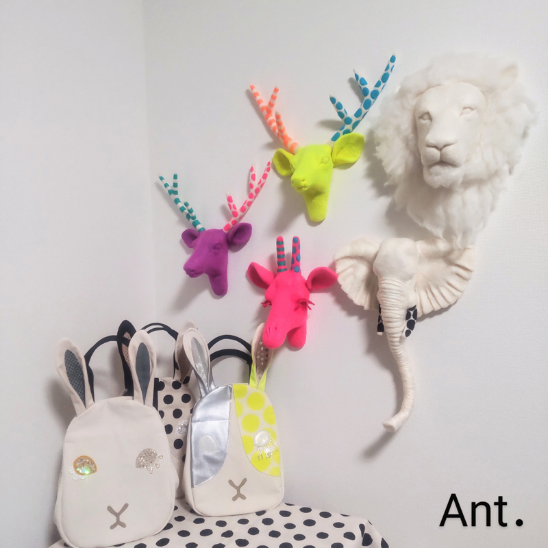 動物をモチーフにしたポーチやスマホ入れ・ブローチなどの布小物や洋服を作っています。